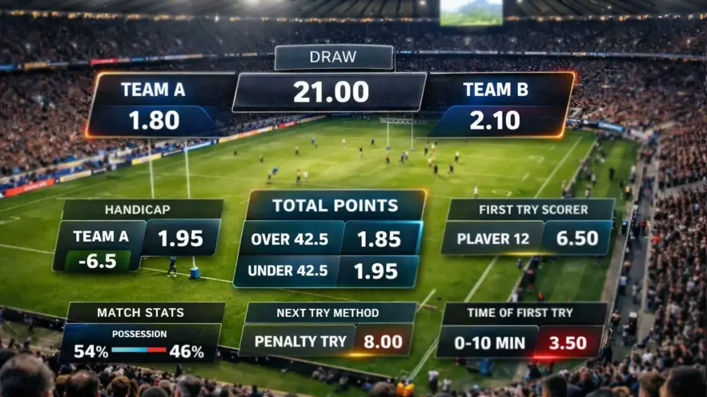 Le total de points (over/under) demande d’évaluer les capacités offensives et défensives des équipes ainsi que les conditions de match. Un terrain détrempé par la pluie ralentit le jeu et limite les possibilités de marquer. Le vent fort complique les transformations et pénalités. Les équipes au jeu conservateur produisent mécaniquement des scores plus serrés que les formations offensives. La ligne habituelle se situe autour de 40-50 points combinés selon les affiches.
